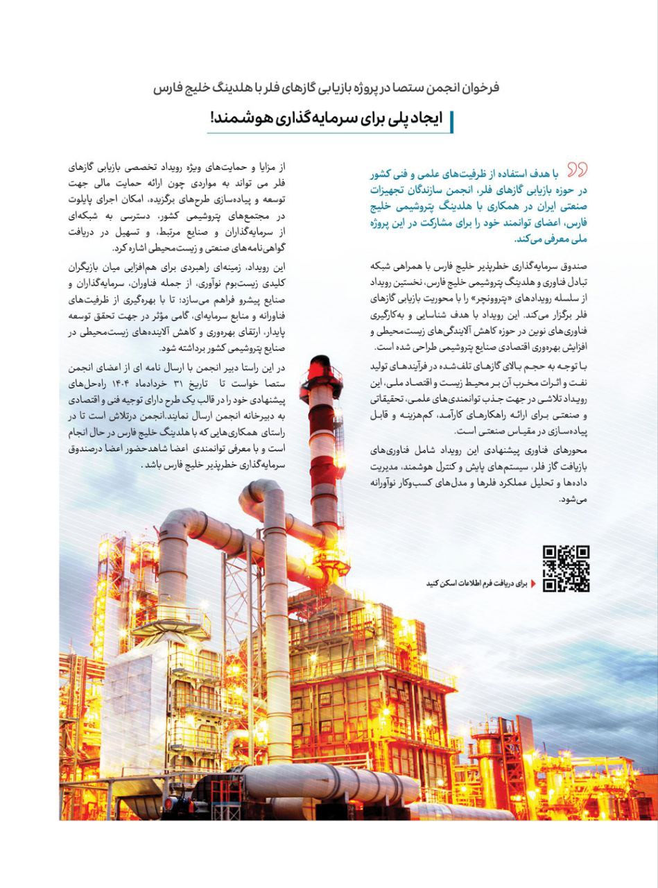 فراخوان انجمن ستصا در پروژه بازیابی گازهای فلر با هلدینگ خلیج فارس